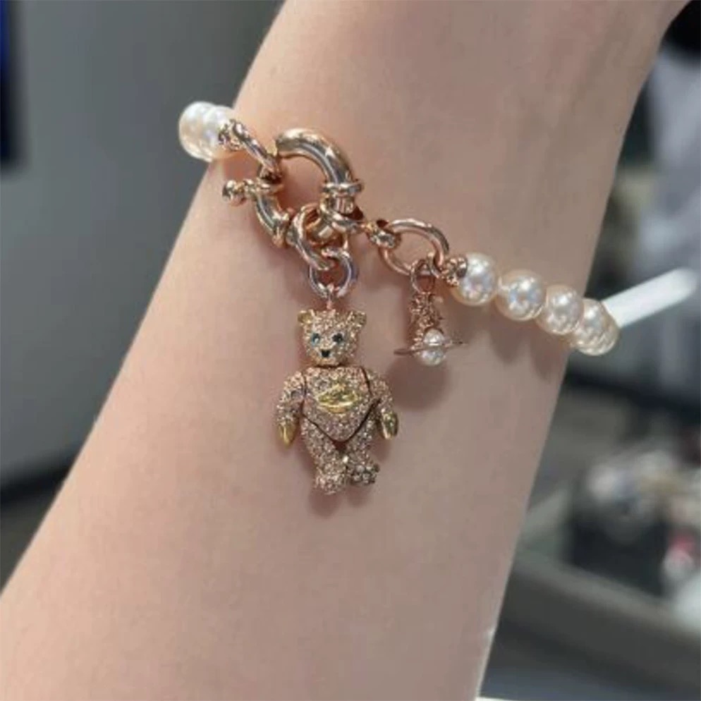 2 Colors TEDDY Cubic Movable Bear Pearl Bracelet