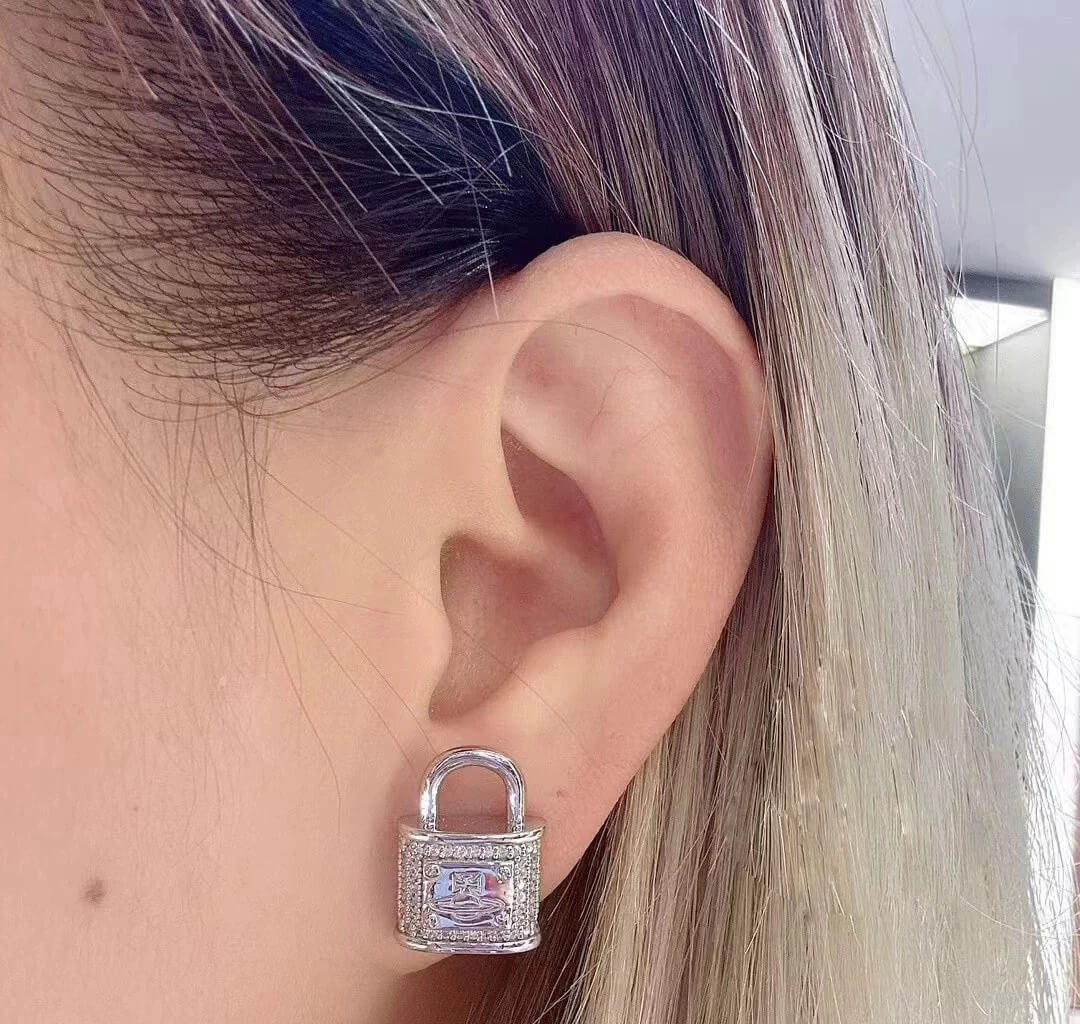 Full Diamond Lock Earrings