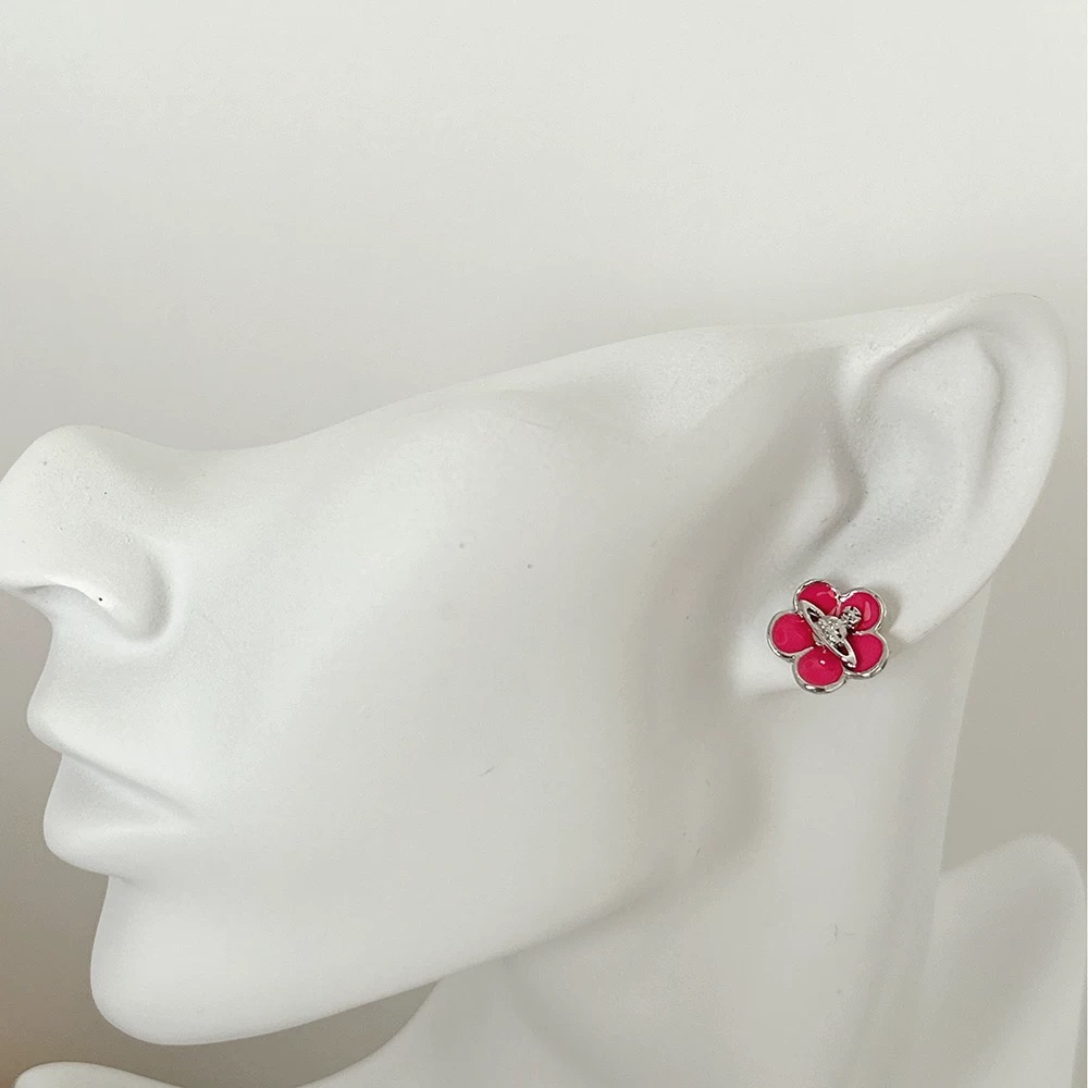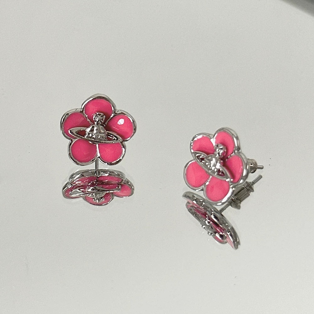 Pink Flower Saturn Earrings
