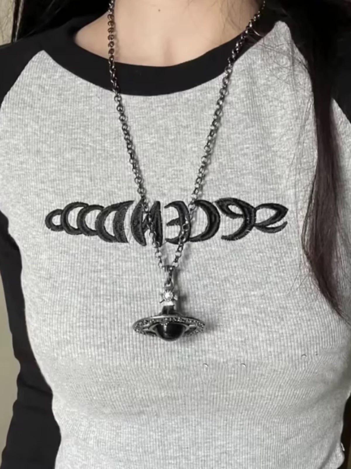 3 Colors Antique Silver ORB Engraved Crystal Ball Saturn Necklace