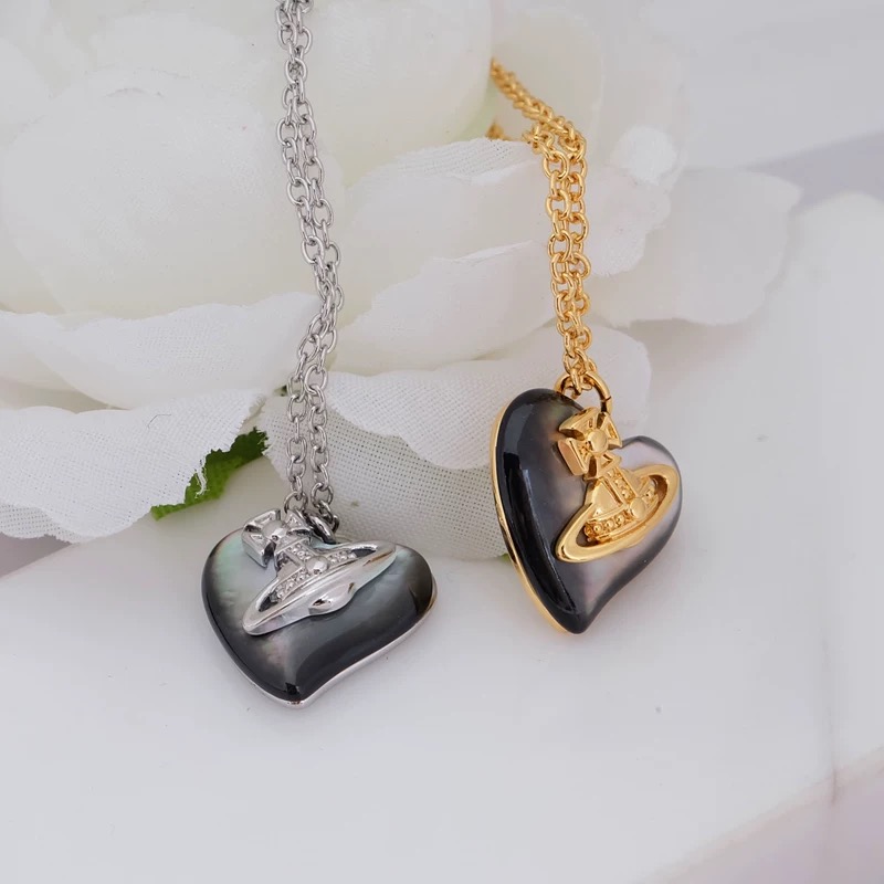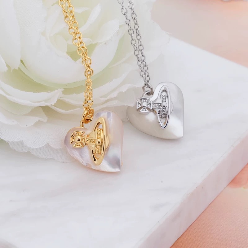 4 Colors Big Saturn Seashell Heart Necklace