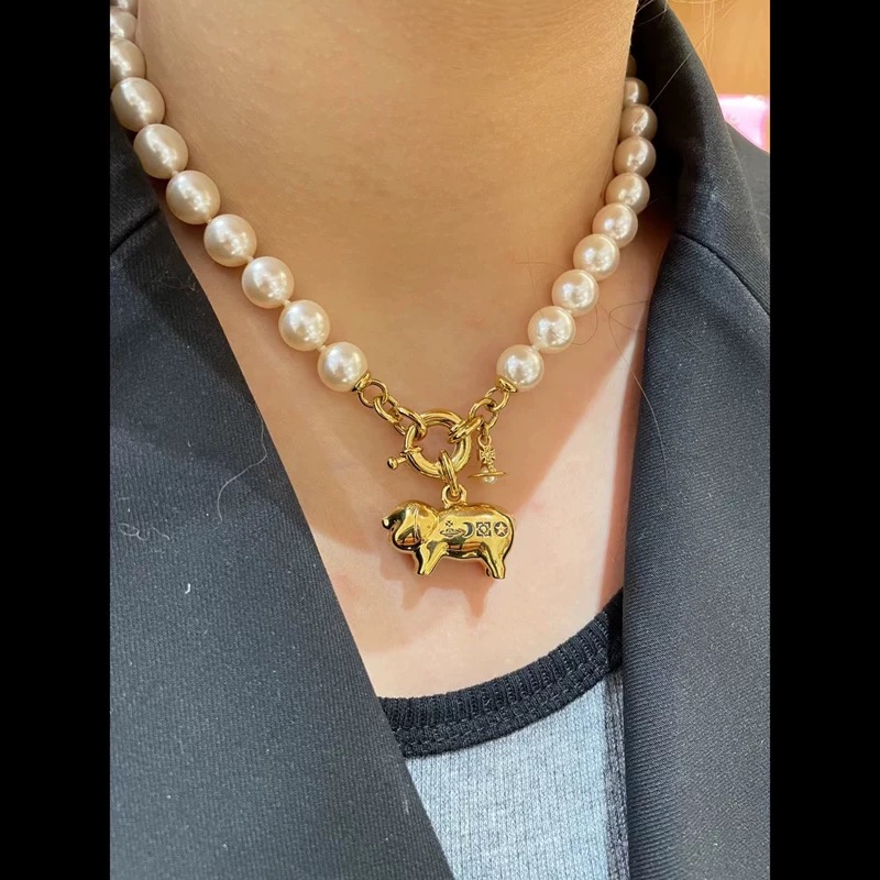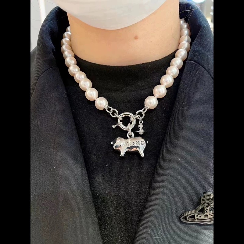 2 Colors JUANITA Pig Saturn Letters Pearl Necklace