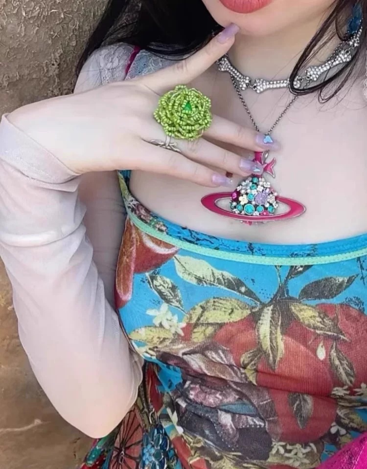 Large Flower Saturn Necklace