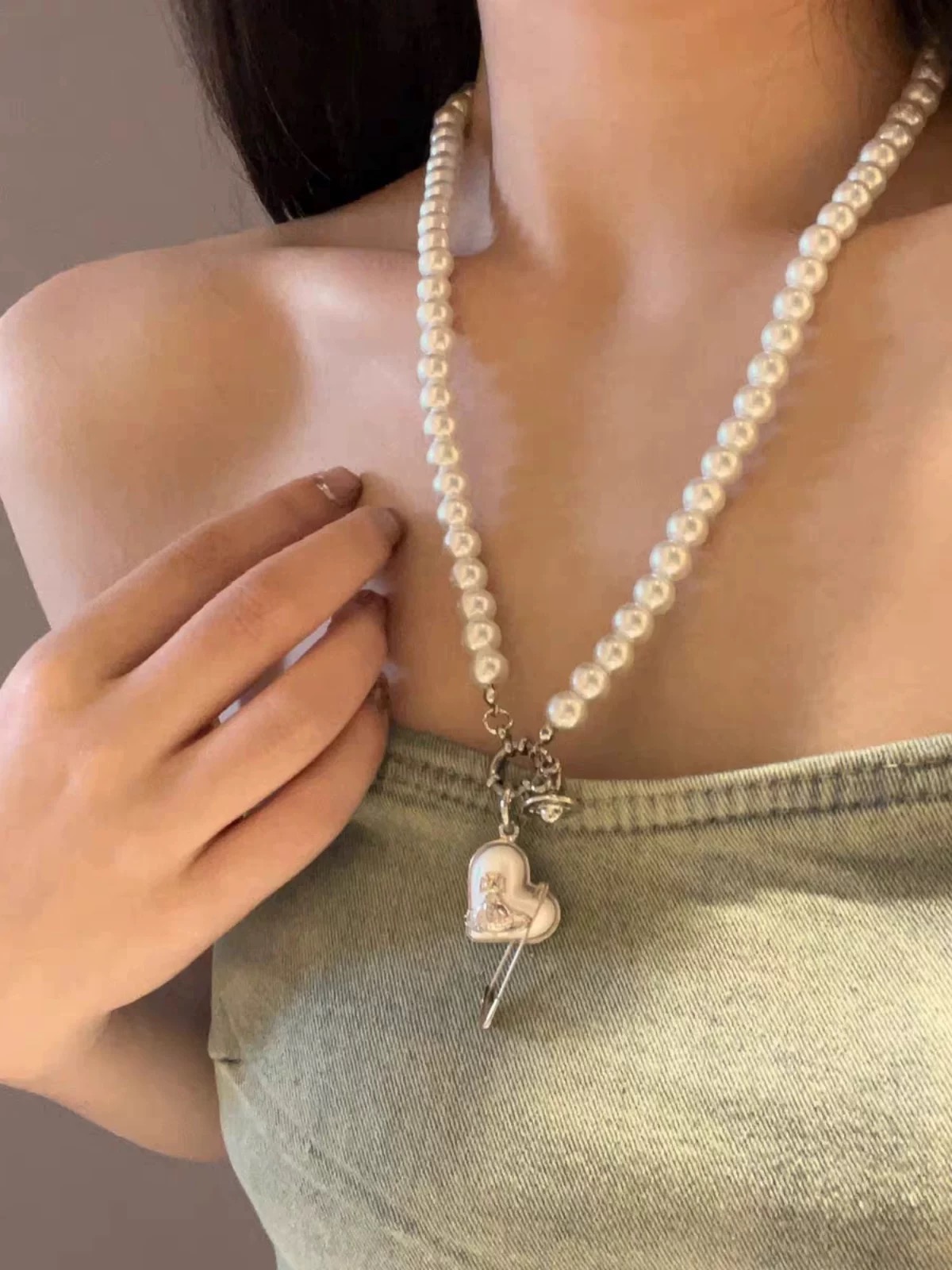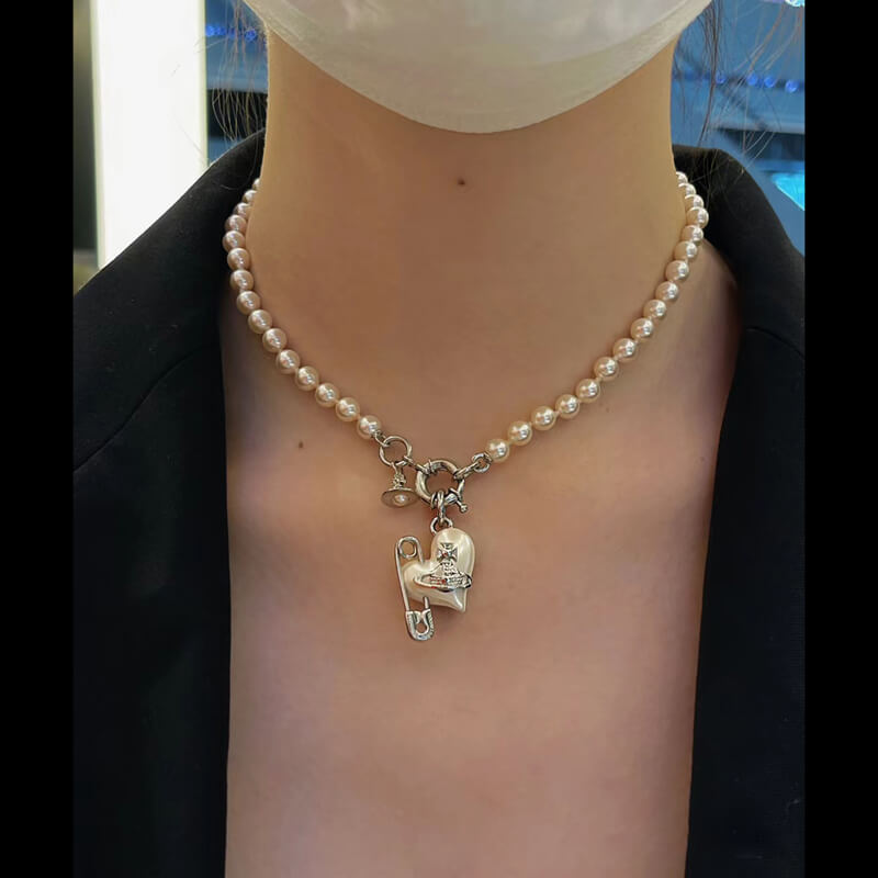 4 Colors ORIETTA Peach Heart Pearl Pin Necklace