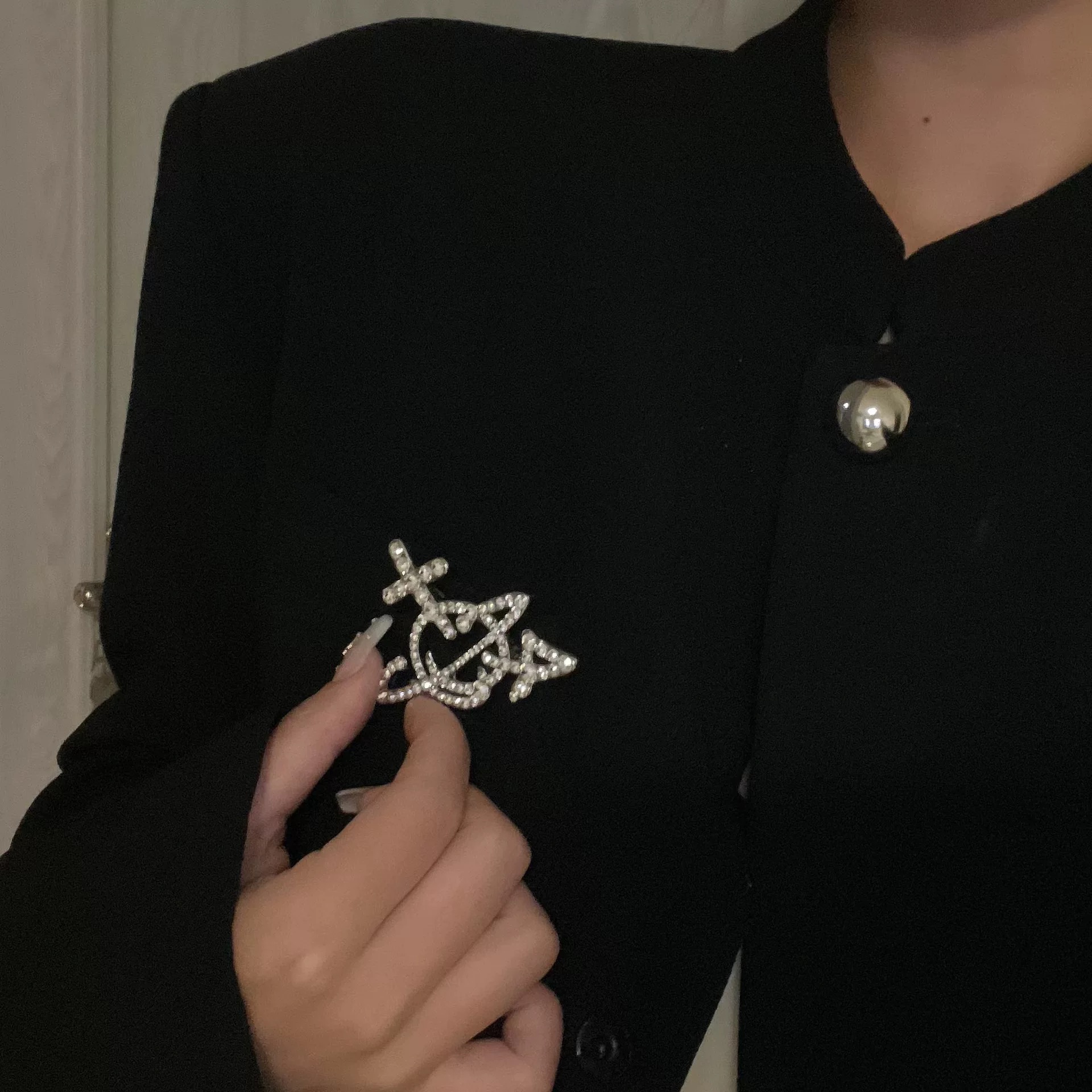 Full Diamond Saturn Line Brooch